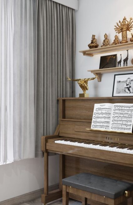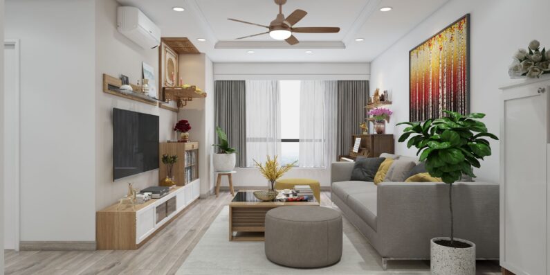 • Vật liệu chủ đạo: gỗ MDF lõi xanh chống ẩm An Cường, đá marble cao cấp.