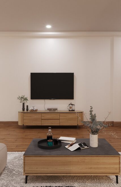 • Vật liệu chủ đạo: gỗ MDF lõi xanh chống ẩm An Cường, đá tự nhiên cao cấp.