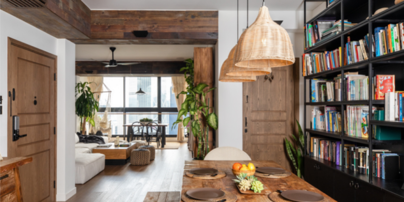 • Vật liệu chủ đạo: gỗ MDF lõi xanh chống ẩm An Cường, đá tự nhiên cao cấp.